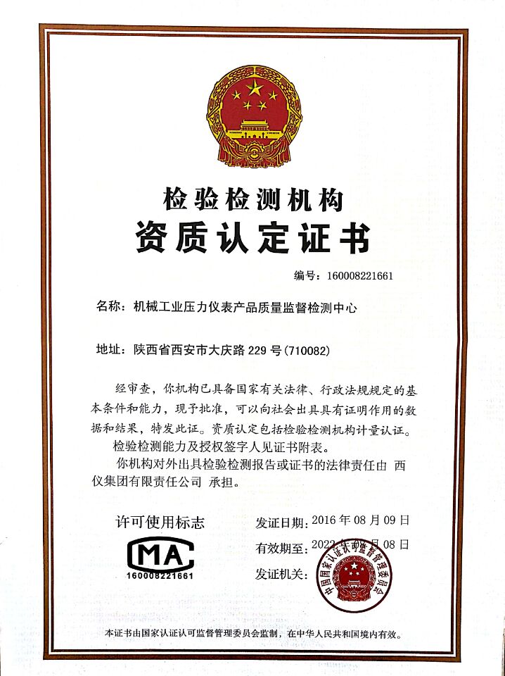 機械工業(yè)壓力儀表產(chǎn)品質(zhì)量監(jiān)督檢測中心